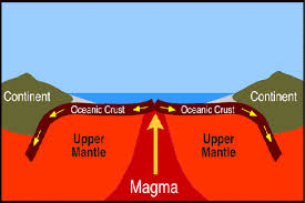 Formation of areas of oceanic crust. That involve hot magma erupting out of the ocean floor and then cooling down which cause the magma to crack when it cools down.